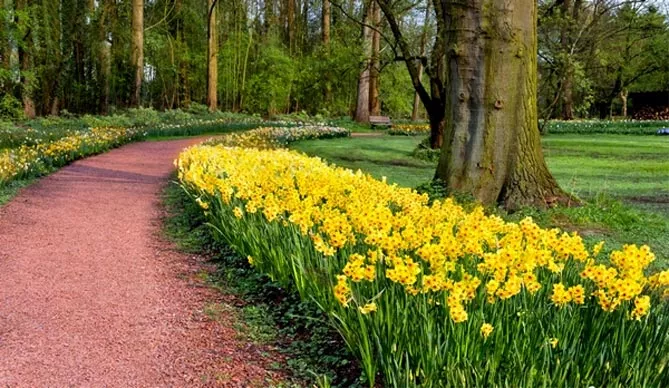 Нарцис (Narcissus) – один з найчастіше використовуваних на обводках цибулинних рослин. Окремі види та сорти різняться за розміром (зазвичай 20-40 см) та зовнішнім виглядом квітів (білий, жовтий, помаранчевий). Це весняне прикраса саду – цвіте нарцис з квітня по травень.