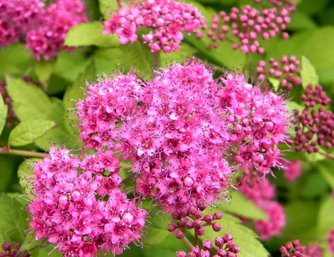 Чагарник стійкий до морозів, хвороб, шкідників. Прикраса рослини – яйцеподібні, гострі листки, що міняють колір залежно від пори року. Кущ виростає до 100 см. Японська спірея цвіте з червня по вересень, квіти невеликі, зібрані в грона, рожеві або білі.