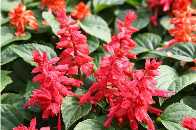 Це кущ заввишки до 20-40 сантиметрів, з прямостоячими, жорсткими пагонами та колючими, інтенсивно червоними квітами. У різних сортів квітки бувають білими, кремовими, фіолетовими. Шавлія може рости на різних ґрунтах, але віддає перевагу родючому, перегнойному, вологому грунту. Рослина любить сонячні позиції. Цвіте довго, як і попередні 2 види – з весни до пізньої осені.