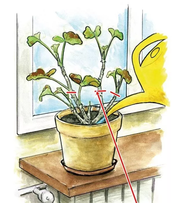 Правильне і своєчасне прищипування герані дозволяє активувати бічні вегетативні бруньки. Без сторонньої допомоги вони залишатимуться у стані спокою. Після обрізки пеларгонії бічні бруньки починають не тільки формувати нові пагони, але й приймають участь у закладанні зачатків суцвіть.