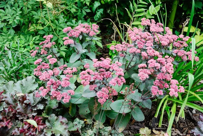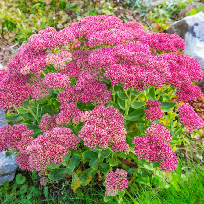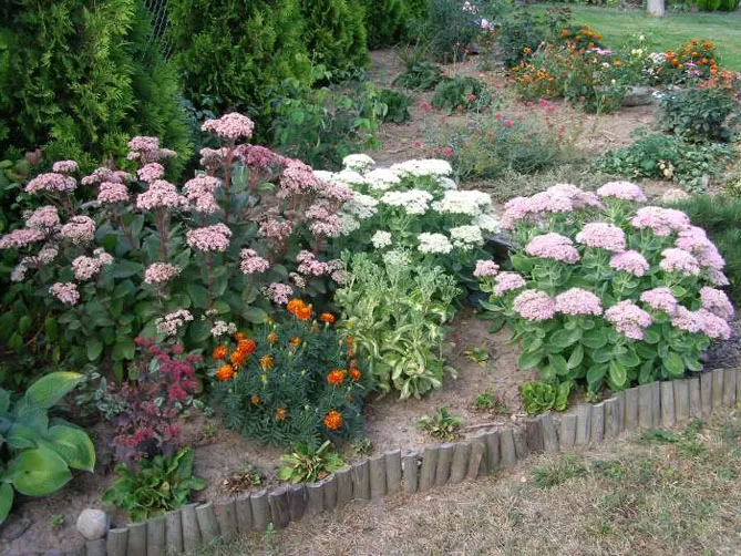 Sedum Spectabile має безліч різновидів, зазвичай пурпурового та червоного кольору. Нещодавно з'явилися різновиди з білими квітами. Вид чудово підходить для рокаріїв.