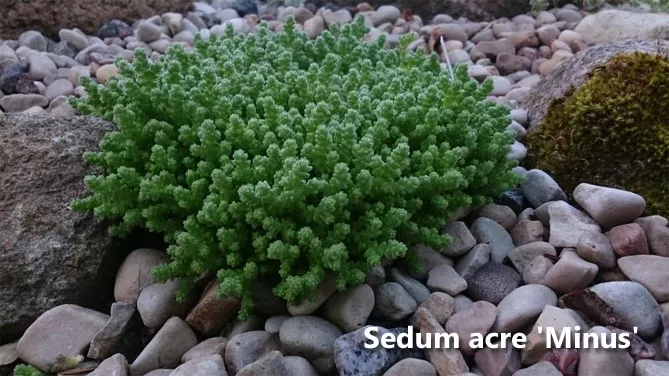 Очиток їдкий (Sedum acre) – другий за популярністю вид у вирощуванні, також походить з родини Товстянкові. Багаторічник високо цінується в декоративному садівництві. Рослина невисока, нетребувальна, тому її часто використовують для рокаріїв. Це дернино-утворюючий багаторічник, що створює низький дерен, дуже компактний, схильний до поширення. Sedum acre має повзуче стебло, на вершині якого з'являються цікаві квіти.