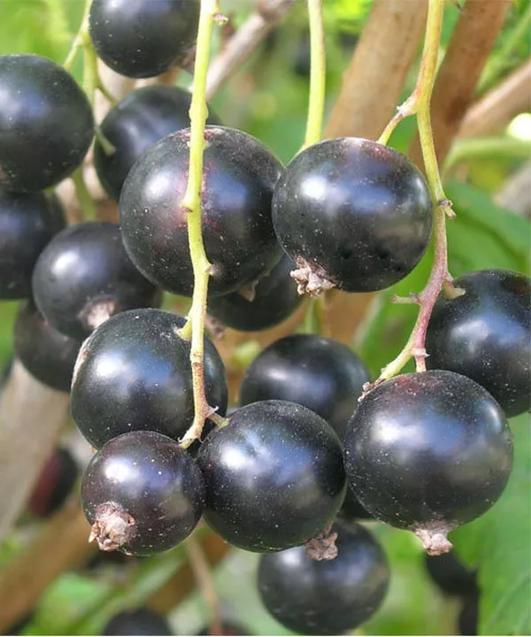- Голіаф – західно-європейська культура. За смаком перевершує багато інших великоплідних ягід. Сорт висаджується дуже часто у домашніх садах. Дуже великі чорні, солодкі та смачні ягоди дозрівають на початку червня у кількості 6-8 кг (дуже високий показник урожайності з куща). Середнє зростання куща, широка, розлога крона. Смородина Голіаф підходить для вживання у свіжому вигляді, приготування десертів, варення.