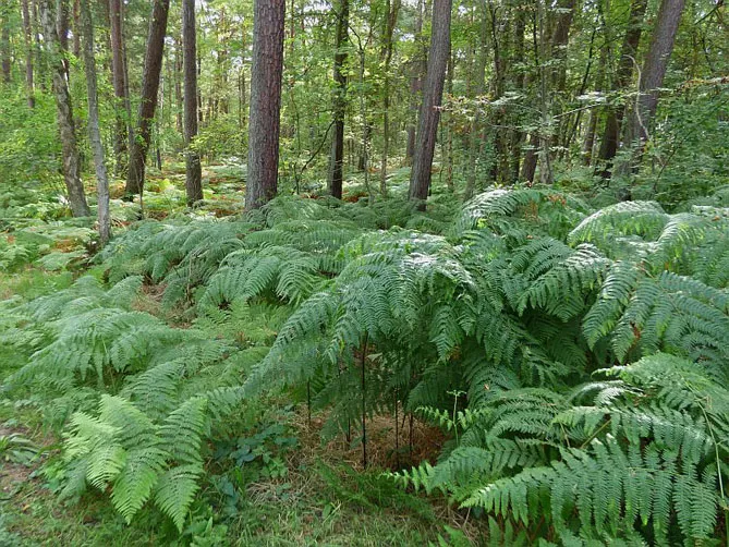Один из самых распространенных папоротников – Орляк обыкновенный (Pteridium aquilinum). Он растет в хвойных и лиственных лесах, на опушках. Распространен в Средней Полосе, Сибири, на Урале, Дальнем Востоке. Это высокорослый вид с пышным ростом, достигает высоты 2 метра. Образует большие зонтиковидные ажурные листья, растущие из длинного ползучего корневища. Складчатые листовые пластинки принимают форму треугольника, достигают 1 метра в длину. В конце сезона листья приобретают золотисто-ржавый цвет.