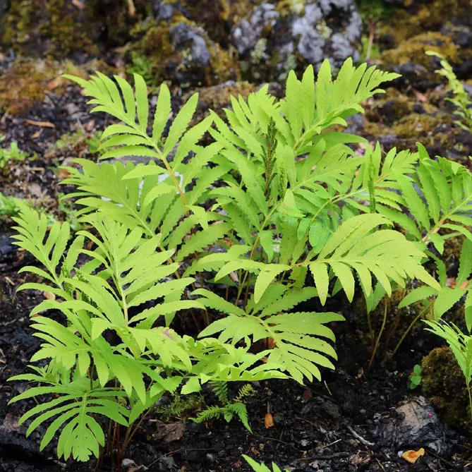 Когда споры падают на землю, они прорастают, производя заростки – крошечные, похожие на мох организмы, которые несут половые органы. После оплодотворения из этих заростков вырастут новые растения.