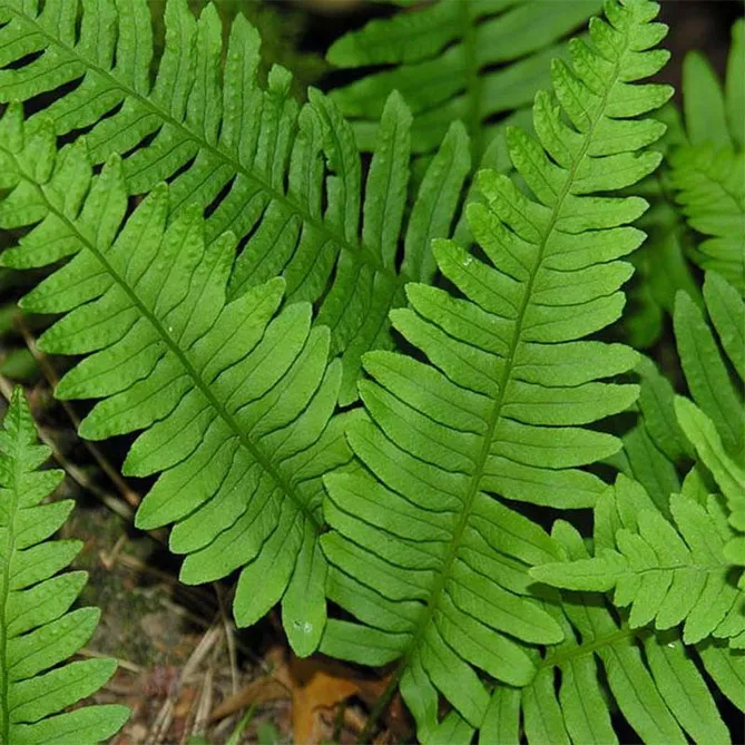 Дербянка колосистая (лат. Blechnum spicant) – многолетник с линейными листьями достигает 40 см. Предпочитает кислый грунт и темные леса, боится известняковых почв!