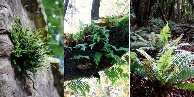 Папоротники удивляют своим разнообразием. Некоторые виды оживают: они могут полностью высохнуть, казаться мертвыми и оживать с первой каплей воды. Другие, полностью водные, плавают на воде. Некоторые из них мирмекофилы: живут в симбиозе с муравьями, обеспечивая им укрытие. Есть вьющиеся папоротники – Лигодиум японский (Lygodium japonicum). Древовидные образуют настоящие стволы, к сожалению, они не очень выносливы, требуют защиты на зиму.