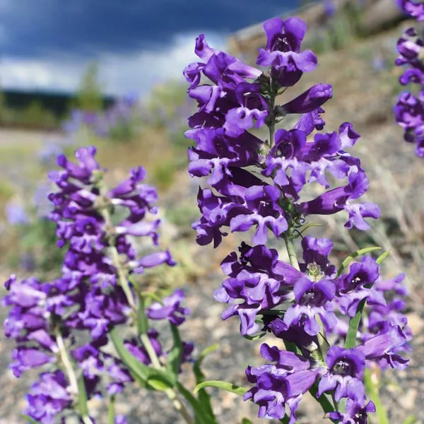 - Пенстемонвысокий (Penstemon procerus) вместе с соцветием вырастает до 10-15 см, цветки сапфирово-голубые, зацветают на рубеже мая-июня, любит супесчаные почвы с большой примесью щебня.