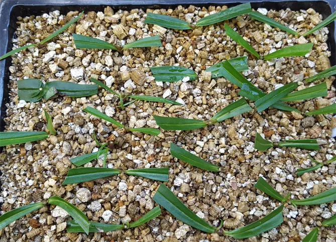 Для этого нужно срезать нецветущие верхушечные побеги длиной 10-20 см и удалить нижние листочки. Подготовленные таким образом черенки сажают в субстрат для укоренения и держат в прохладном, но не промерзающем месте, регулярно проверяя уровень влажности. Укореняются черенки через 2-3 недели.