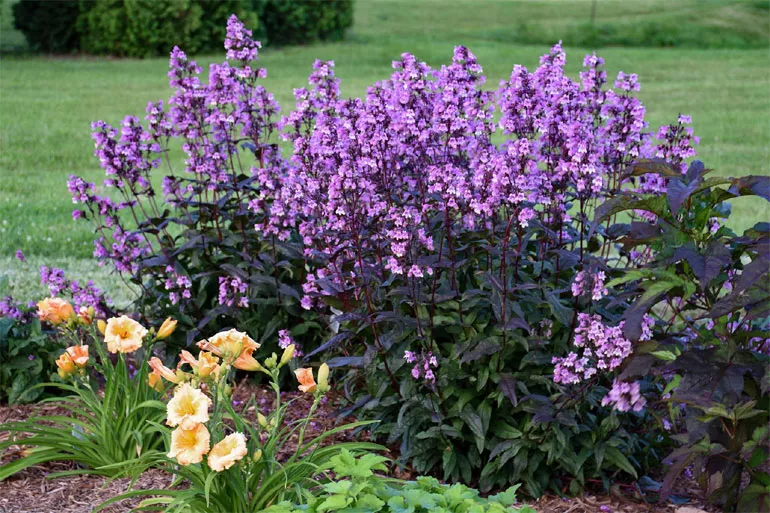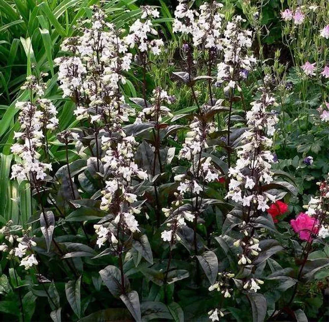 - Пенстемон наперстянковый (Penstemon digitalis) – вырастает до 80-100 см. Предпочитает солнечные или слегка затененные места. Не переносит застоя воды, требует укрытия зимой.