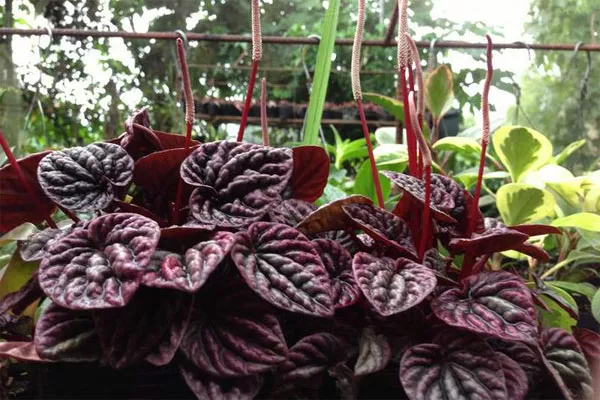 Интересны сорта с пестрыми или фиолетовыми листьями, например, пеперомия «Россо». Peperomia caperata Rosso – уникальный сорт с необычным контрастным цветовым сочетанием. Листовая пластинка красивого зеленого цвета, нижняя сторона отличается рубиновым цветом. Удлиненные листья расположены на побегах равномерно. Создает небольшие кустики высотой 30 см.
