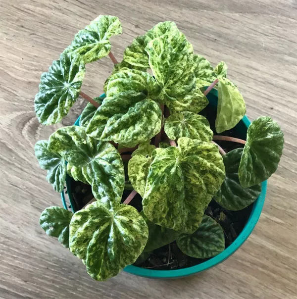 Сорт «Джинни» – с необычной окраской листьев. Листовая пластинка зеленого цвета и цвета слоновой кости. Овальная форма листьев подчеркивает красно-розовую окраску края листа. Солнечные лучи заставляют белый цвет становиться розовым, придавая листьям интересный вид. Достигает высоты 35 см.
