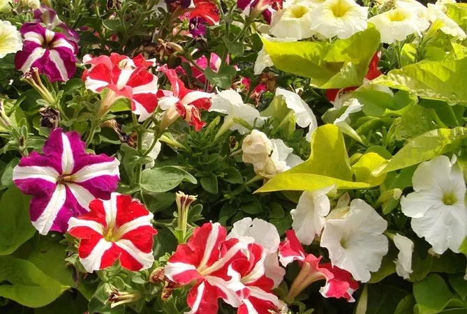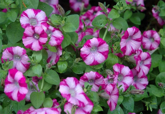 - петунии из группы Звезда (Star) с разноцветным звездным рисунком.