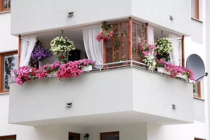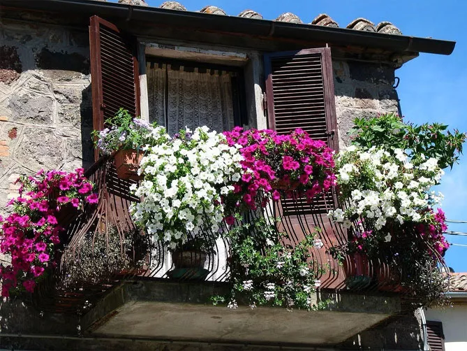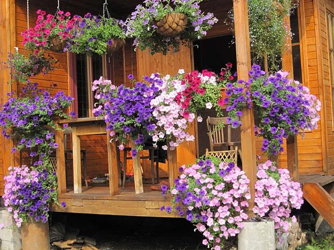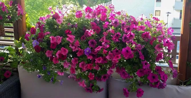 Балконные петунии обычно располагаются на высоте – на балюстраде, на высокой клумбе или в подвесной корзине. Так подчеркивается их вьющийся характер, каскадные сорта могут создавать шторы из разноцветных цветов. Сурфинии предпочитают направление роста в соответствии с силой тяжести. Сорта петунии с маленькими цветами могут расти на слегка затененных балконах.