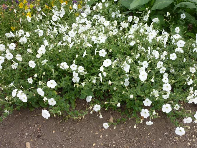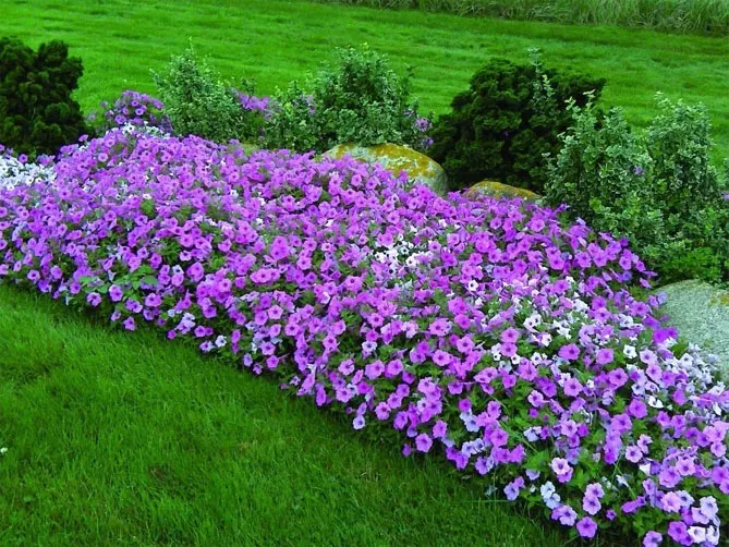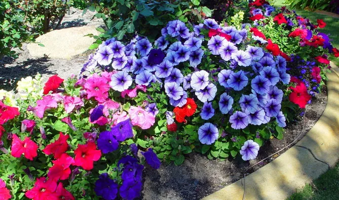 Посаженные на рабатках петунии превращаются в привлекательный почвенный покров, создавая ковры, красиво смотрящиеся возле бордюра или газона. Скорость их роста позволяет быстро украсить каждую рабатку, даже с учетом необходимости ежегодного обновления растений.