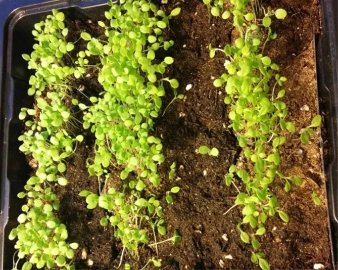 - Когда появляется 2-3 листа (примерно через 2-3 недели после прорастания), сеянцы пересаживают в небольшие контейнеры, на расстояние около 3 см. Контейнеры помещают в солнечное, теплое место.