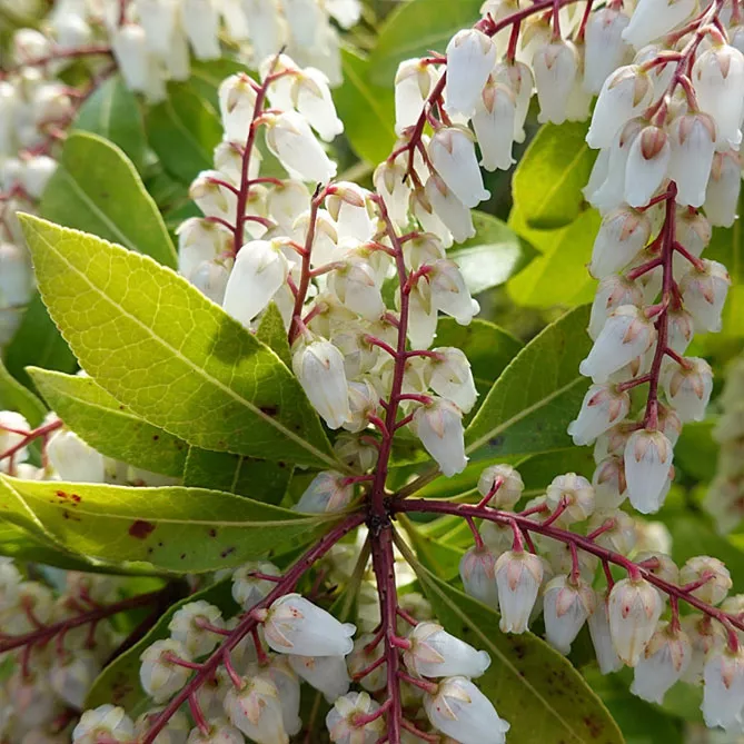 Род включает 7 видов, но в наших садах чаще используют 3 вида пиериса: