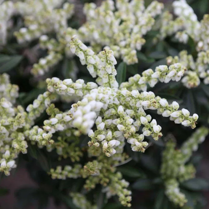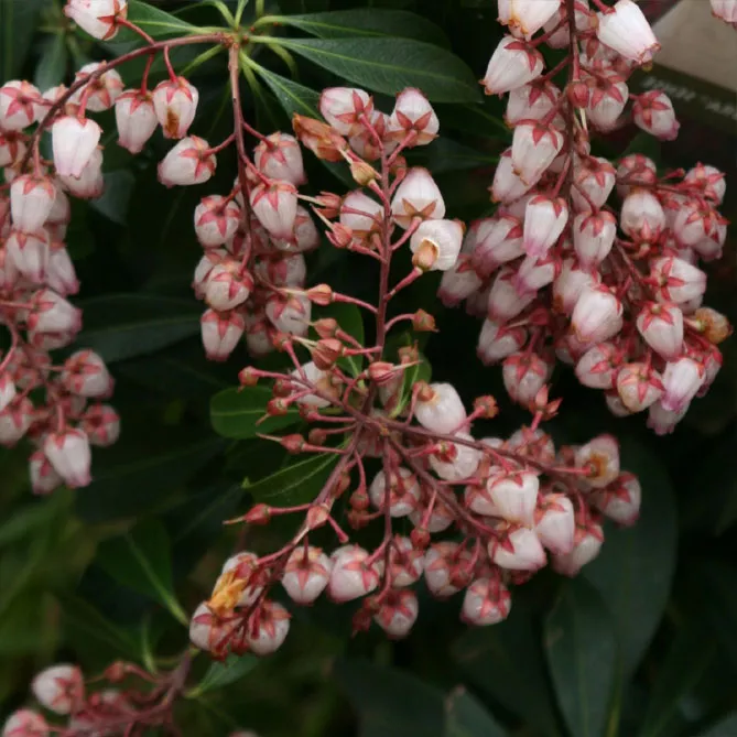Цветки собраны в метелки длиной 8-15 сантиметров. У некоторых сортов соцветия достигают длины 25 см в длину, делая цветение по-настоящему эффектным! Метелки часто поникающие, но могут быть и прямостоячими, как у Pieris floribunda.