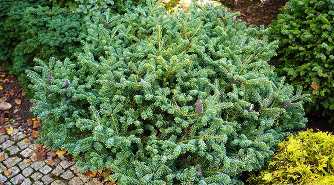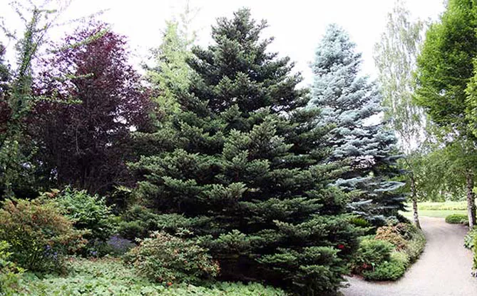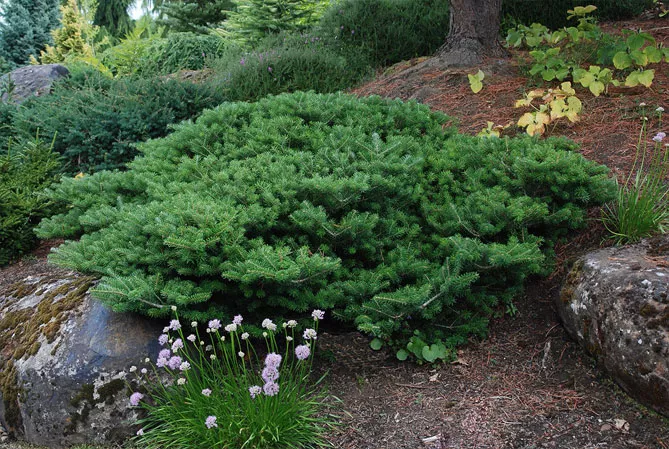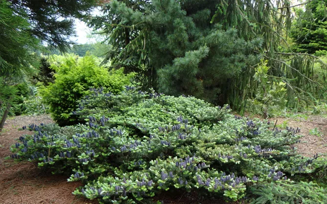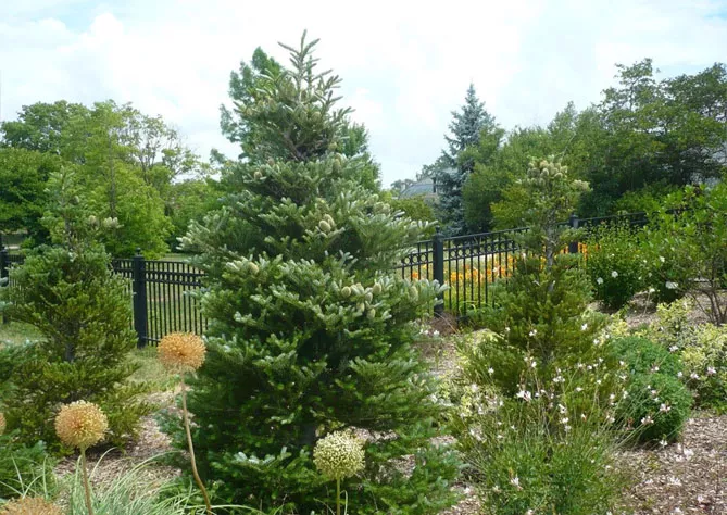 Фото. Пихта A. koreana (корейская) в ландшафтном дизайне сада