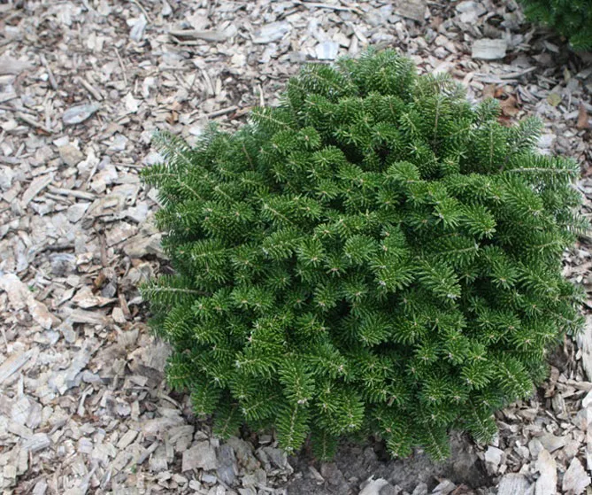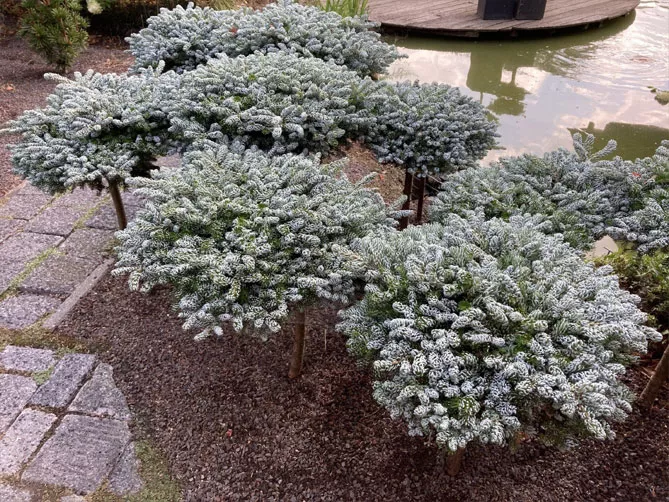 Пихта «Пиноккио» – относится к карликовым сортам с характерной шаровидной формой. Обычно прививают на штамбе.