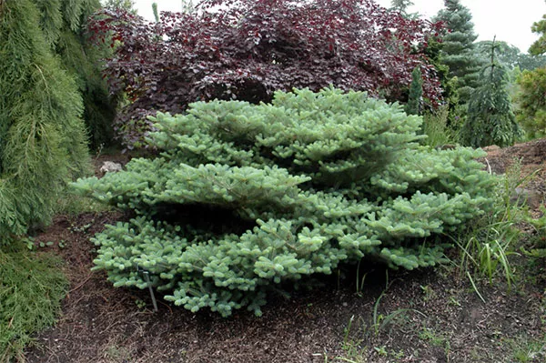 - «Тундра» Tundra – миниатюрный сорт с плоской шаровидной, правильной формой кроны. Сорт медленнорастущий, через 10 лет достигает 0,4 м в высоту и 0,6 м в ширину. Побеги короткие, тонкие, придают растению подушечный вид. Подходит для выращивания в контейнере.