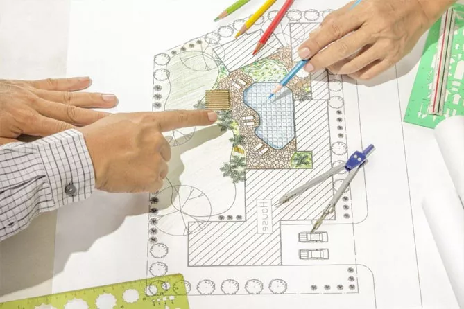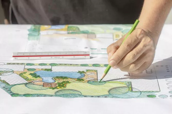 - посадка растений, закладка газона.