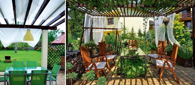 - решетками с вьющимися растениями.