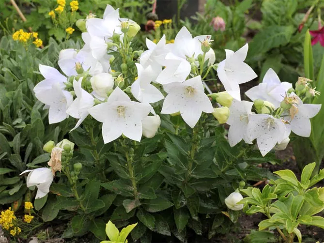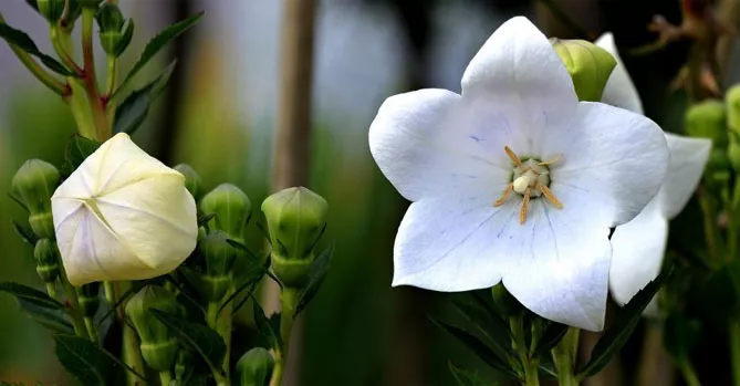 - Platycodon Albus – достигает высоты побегов 40 см, белые цветы с нежными голубыми элементами.