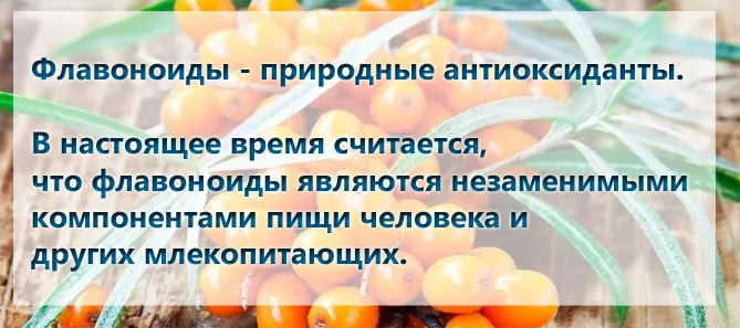 Полифенольные соединения, особенно флавоноиды и фенольные кислоты, обычно встречающиеся в растениях, также присутствующие во всех частях облепихи, являются наиболее важными биологически активными веществами, ответственными за антиоксидантные и противовоспалительные эффекты.