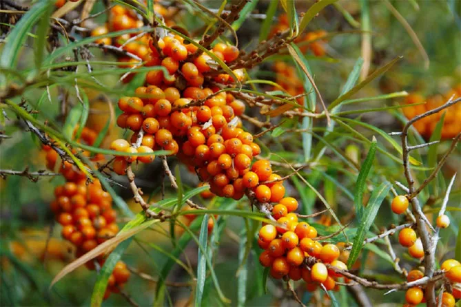 Облепиха – это растение, все части которого богаты многочисленными полезными веществами. Ягоды облепихи являются одними из наиболее ценных частей растения, они содержат минеральные вещества, полифенолы, витамины, особенно много витамина С. Листья и плоды содержат много активных веществ, включая антиоксиданты, они также оказывают сильное противовоспалительное действие. В азиатских странах популярно использование экстрактов листьев облепихи при лечении ран, ожогов. Облепиховое масло защищает от вредного воздействия ультрафиолетовых лучей.