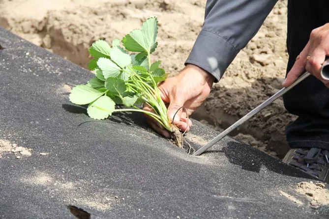 - Нетканный материал позволяет остановить рост сорняков, с которыми бороться при выращивании клубники очень обременительно. Нет необходимости в гербицидах, мы только вручную удаляем сорняки, растущие рядом с растениями.
