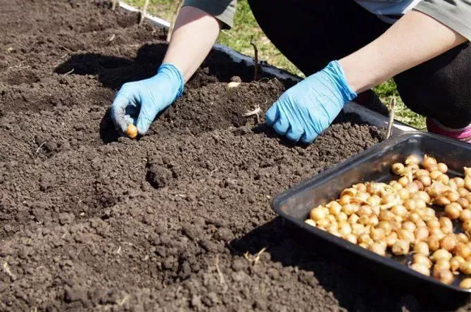 Если почва и посадочные луковицы подготовлены, можно переходить непосредственно к посадочной процедуре. Она выполняется по такому алгоритму:
