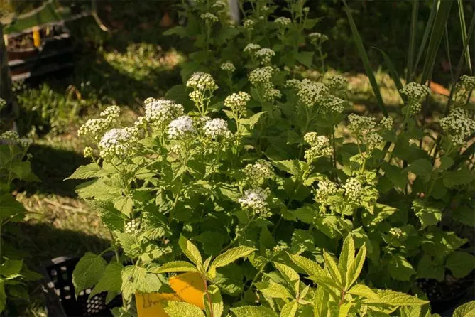 Самый известный сорт вида Eupatorium rugosum – «Шоколад» или «Шоколадный» – Chocolate, представленный на фото.