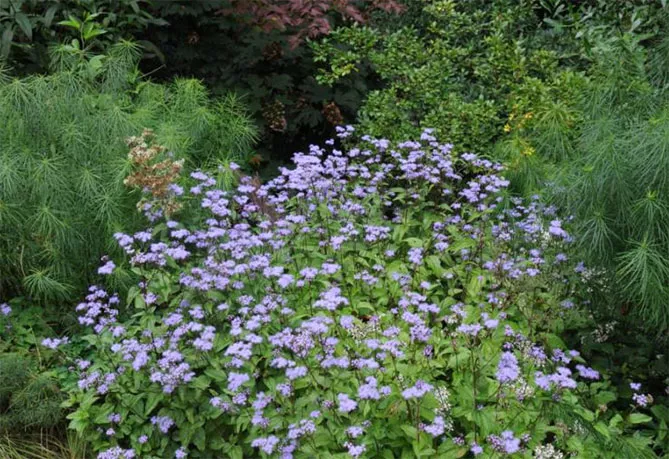 Посконник – морозостойкое многолетнее растение с надземной частью, отмирающей зимой, или чувствительный к морозу вечнозеленый кустарник. Предпочитает полутенистые позиции – на солнце может быстро высохнуть.