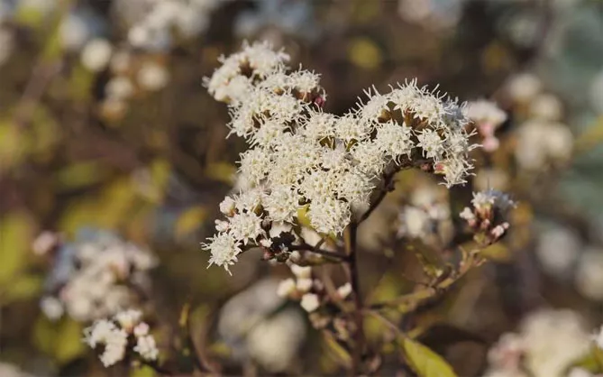 Вид посконника Eupatorium aromaticum – немного меньшее растение высотой 1,5 м и шириной 1 м. Многолетник цветет в конце лета, образуя густые белые соцветия размером до 10 см. Овальные листья (обычно длиной до 10 см) часто имеют зазубренные края. E. aromaticum – морозостойкий вид.