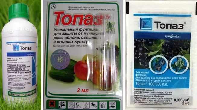 Так как Топаз применяют в фермерских, личных подсобных хозяйствах и на площадях, обработать которые можно только с привлечением авиации, форма выпуска может существенно отличаться. Препарат фасуют в:
