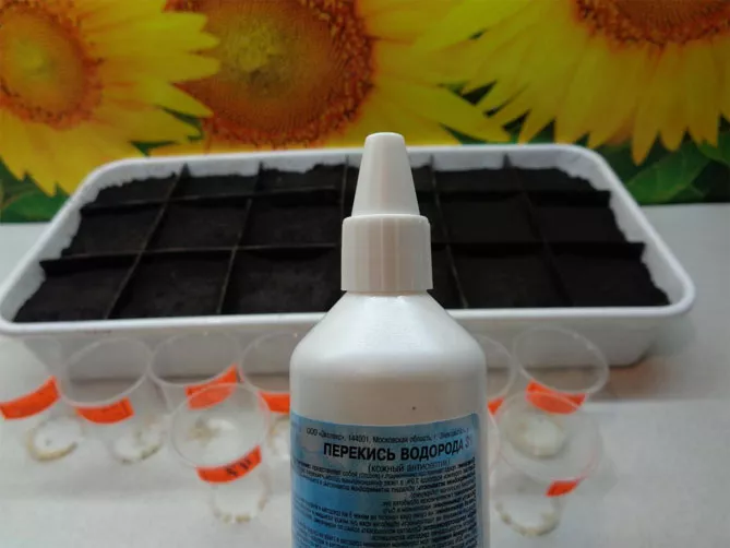 - Раствор 3%-ной перекиси подогревают до температуры тела (желательно поместить пузырек в емкость с горячей водой на минуту, взболтать и еще подогреть 30 секунд), помещают в него семена, выдерживают 10 минут и раскладывают для сушки на чистую ткань.