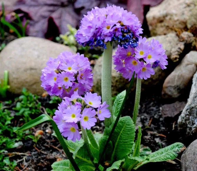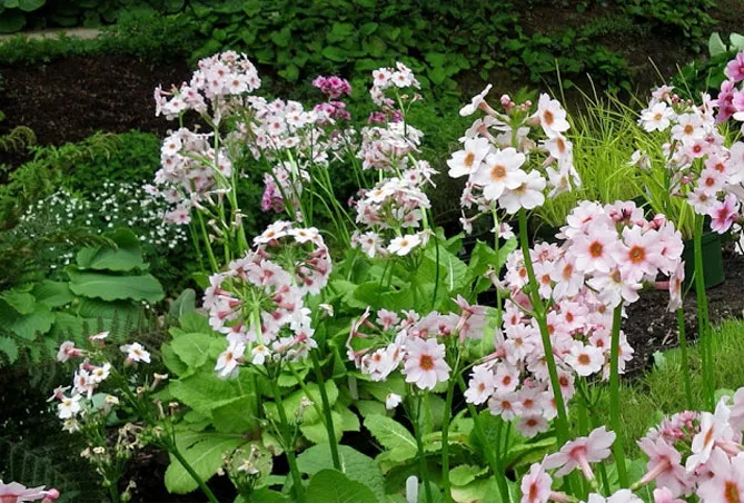 Японские первоцветы идеально подходят для полутенистых уголков сада возле деревьев и кустарников, на краю пруда.