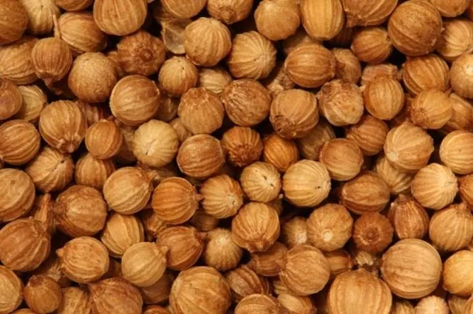 Свежая трава кориандра и незрелые плоды выделяют неприятный запах, похожий на запах клопа. Спелые плоды благодаря содержанию летучего масла меняют аромат (и вкус) на приятный – пряный. Спелые плоды сухие, шаровидные, соломенно-коричневые, диаметром 3-5 мм, иногда распадаются на две части (каждая часть способна прорастать). В качестве приправы используются сушеные плоды кориандра (целые или молотые) – для приготовления колбас, мясных консервов, маринадов, ликеров. Кориандр можно добавлять в салаты, супы, блюда из бобовых, яиц, птицы, рыбы. Свежая трава кориандра используется в качестве специи.
