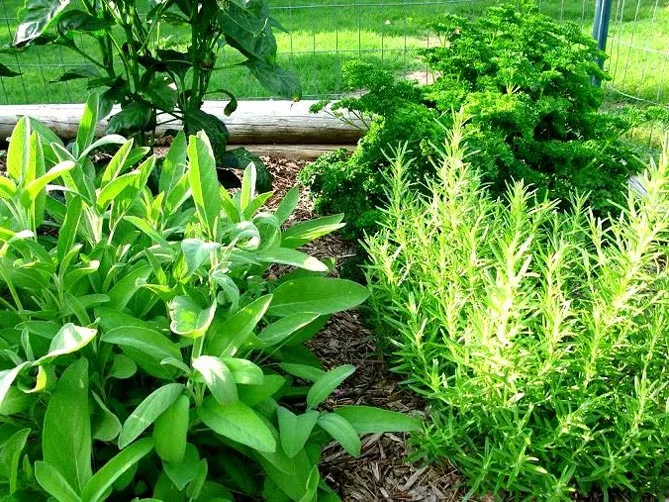 - в центре или сзади – самые высокие (шалфей, розмарин, мелисса);