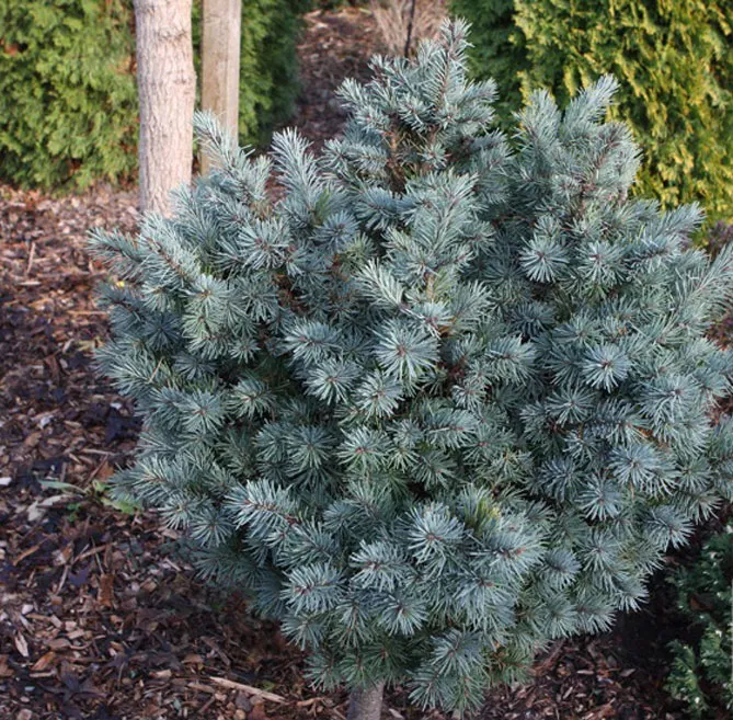 Их можно сажать среди других карликовых хвойных деревьев с раскидистым габитусом: