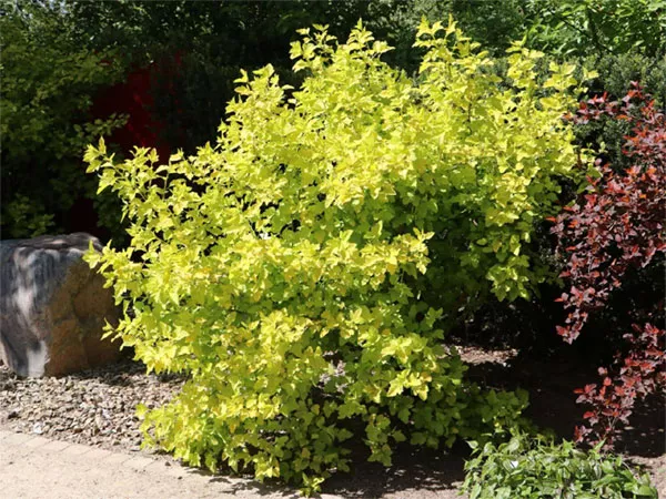 - Кустарник на своей родине достигает высоты 5 м, у нас обычно около 3 м. В наших садах он выступает в роли декоративного растения. Цвет листьев может иметь разные оттенки желтого или даже красного.