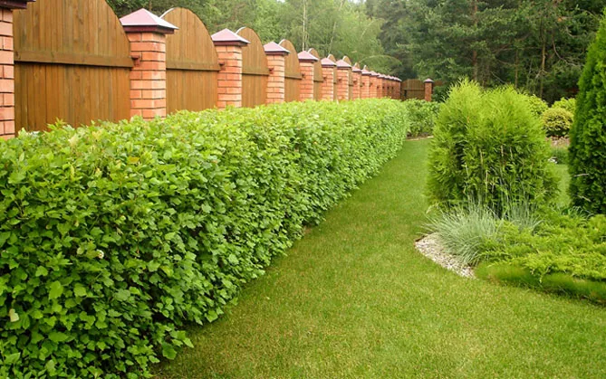 - как живая изгородь – крепкий, нетребовательный кустарник успешно выполняет функцию завесы от ветра или глаз любопытных соседей;