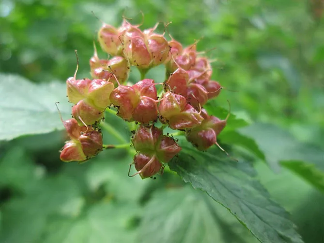 Пузыреплодник головчатый (Physocarpus capitatus) – в естественной среде встречается в Северной Америке, начиная от районов Южной Аляски до Монтаны и штата Юта, на юге Калифорнии. Это густой кустарник, растущий до 1-2,5 метра. Листья пальчато-лопастные длиной и шириной 3-14 см.