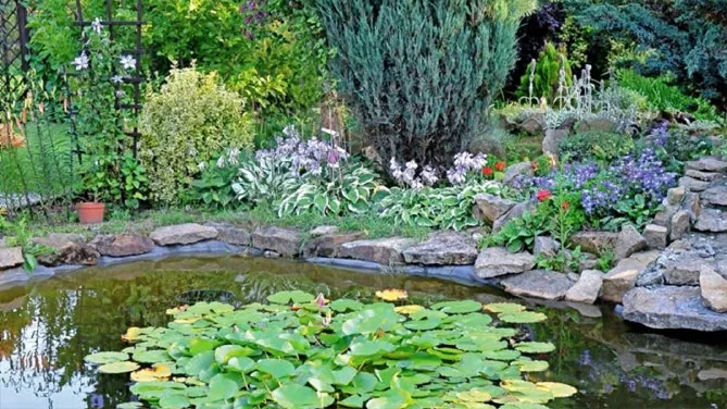 Чтобы наслаждаться красотой пруда, нужно позаботиться не только о правильном его обустройстве, но и о посадке растений. Их биологический баланс также важен. Стоит купить в садовом магазине герметичные контейнеры разных размеров. Зимой можно легко перемещать виды, чувствительные к перепадам температур, в место, которое защитит их от холода.