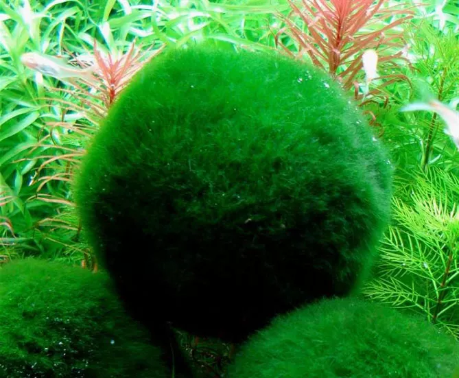 Шаровидная декоративная водоросль Кладофора шаровидная (Aegagropila linnaei) или эгагропила Линнея, ценится владельцами прудов за быстрый рост, декоративные качества и поглощение большого количества соединений азота и фосфора. Она имеет форму плотного ярко-зеленого шара диаметром до 15 см. Эти водоросли для пруда, прикрепленные к земле, корням или камням, могут расти в форме, отличной от шаровидной – тогда из них получаются красивые лужайки. Размножается делением растения на 2 новых. При посадке поместите растение на воду в пруду.