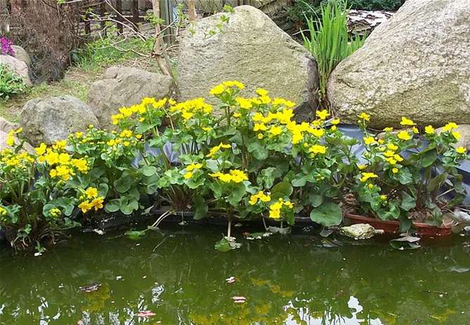 Многолетнее растение калужница болотная (Caltha palustris) имеет толстое, почти луковичное корневище. На этом корневище осенью образуются почки, из которых ранней весной вырастает надземный побег. Калужница подходит для края пруда. К почве требований нет, важно только, чтобы она была постоянно влажной, место должно быть солнечным. Размножается посевом семян осенью или делением разросшихся куртин (предпочтительно осенью). Болотный цветок цветет с марта по май или июнь. Растет на влажных лугах, берегах ручьев, в канавах.
