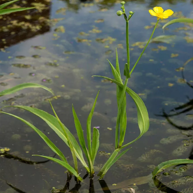Лютик языколистный или длиннолистный (Ranunculus lingua) достигает около 1,5 метров в высоту. Его цветы крупные, интенсивного желтого цвета. Быстро разрастается, используя толстые корневища.