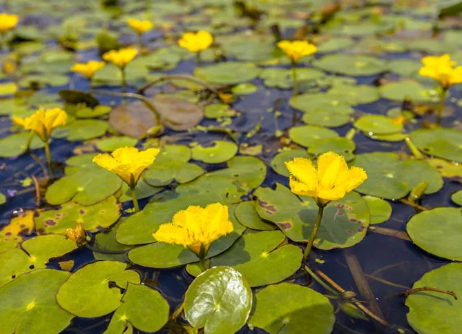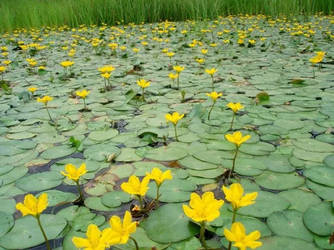 Кувшинка или кубышка желтая (Nuphar lutea) – красивое, чрезвычайно популярное растение для пруда. У него желтые цветы и большие плавающие листья. Корневище укореняется на глубине до 4-5 метров. Желтая кувшинка впитывает питательные вещества, присутствующие в воде.