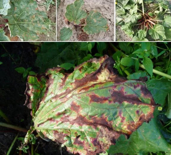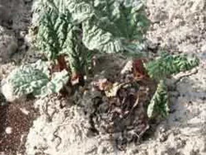 Антракноз ревеня – заболевание проявляется небольшими продолговатыми водянистыми пятнами на листьях и черешках. При сильном заражении листья отмирают. Потери могут быть больше после весенней уборки урожая. Болезнь особенно опасна для черешков, растущих летом.